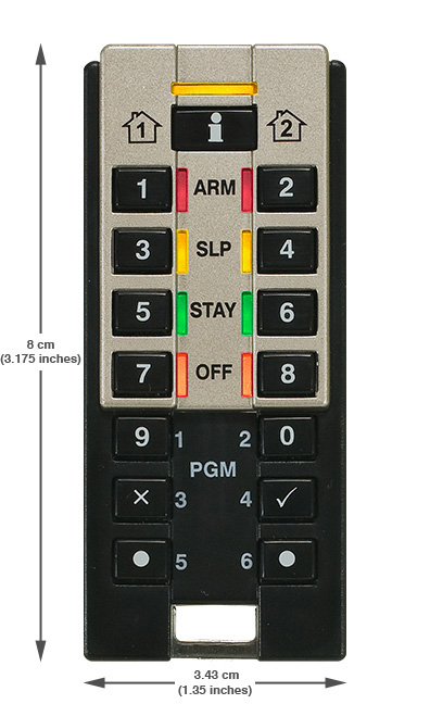 - Taste independente pentru modurile de armare: Armare, Veghe, Cu om in casa sau Dezarmat.
